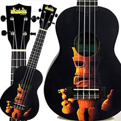 The Kala Ukadelic Soprano Ukulele is a fun way to get started playing the ukulele. The top features a distinctive tiki figure on a black finish that will turn heads and start many conversations. The Kala Ukadelic features a rosewood fingerboard and bridge, Aquila Nylgut strings, poplar or Nato Body and a Paisley pattern surrounding the front face of the instrument. The back and sides of the instrument is stained black. Ukadelic captures all that is fun about the ukulele. These colorful ukes incorporate art, culture and humor into their design. Case not included.Features:13-11/16 Soprano Scale (Distance from Nut to Saddle)21 Overall body length 9-3/8Body length 5-1/4Upper Bout 7Lower Bout 4-1/2Waist 2-3/8Body depth 1-3/8 At Nut Order your Kala Ukadelic Soprano Tiki Man Ukulele from Sam Ash Direct today with the security of our 45/60 day return/price protection policy, and be sure to take advantage of our fast, free shipping