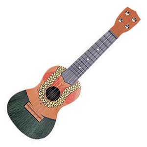 Here is a beautiful Lei grass skirt print Ukulele measuring 18 inches. The Smart Ukulele is a "musical" instrument that has a microprocessor with recorded Hawaiian songs. Pre-recorded music allows you to play and sound like a pro.